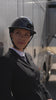 Swarovski-kristaller appliceras för hand och följer hjälmens form hela vägen ner längs framsidan – en glittrande signatur som ger ett förfinat självförtroende till din look i sadeln.